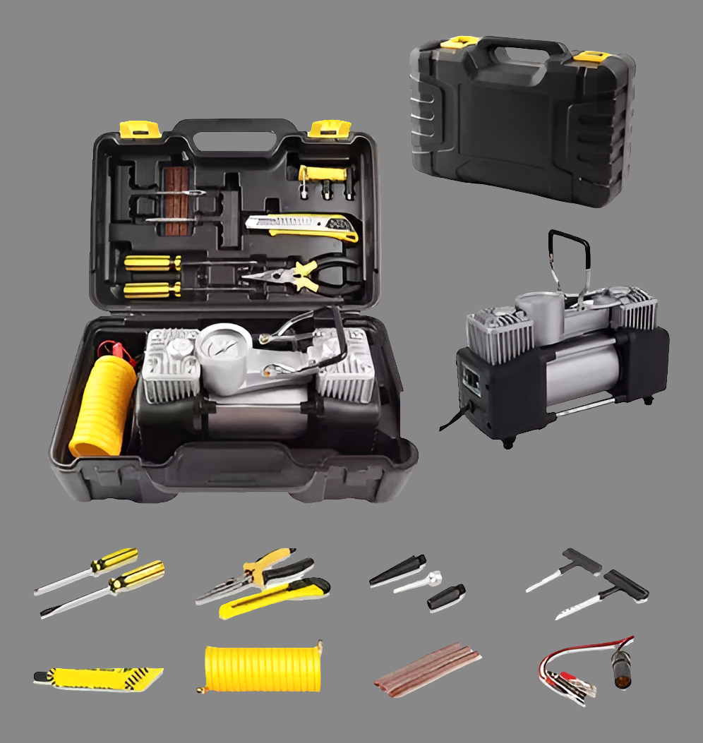 Inflador De Llanta Compresor Doble Piston 12v Auto Camioneta + kit de reparaciòn de llantas+MALETIN+ENVIO GRATIS